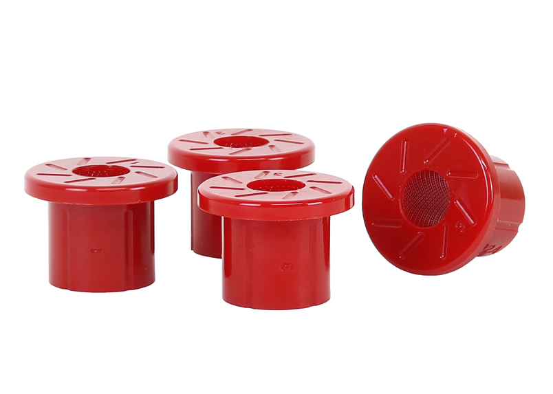 A critical service item for any leaf sprung vehicle. High kilometres and heavy load carrying causes excessive wear on rubber bushings. Nolathane's signature red bushings are made tough and offer outstanding abrasion resistance, high load bearing capability (4WD’s, utes and towing), flexibility, increased tensile strength and chemical resistance to oil, grease, ozone and weathering.