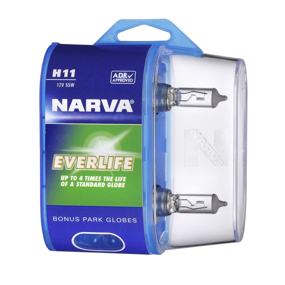 Narva 48079BL2 H11 12V 55W Everlife Halogen Headlight Globes, Twin Pack