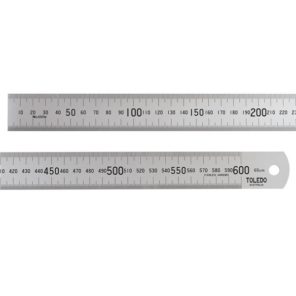 - Graduations on both upper and lower edges with numerical markings in centre only