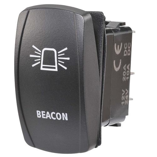 Enhance your vehicle's control panel with the Narva 63234BL LED Illuminated Sealed Rocker Switch. Designed for both 12V and 24V systems, this switch provides reliable performance and clear visibility with its amber "Beacon" symbol illumination. Ideal for a variety of applications, it ensures easy operation and durability.