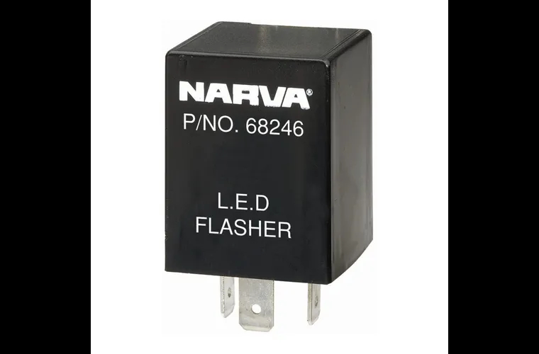 The Narva 68246BL 12 Volt 3 Pin LED Flasher is designed for truck and trailer applications, providing reliable performance with a combination of L.E.D lamps and incandescent globes. This load-sensitive flasher ensures optimal functionality, accommodating various lighting setups.