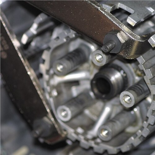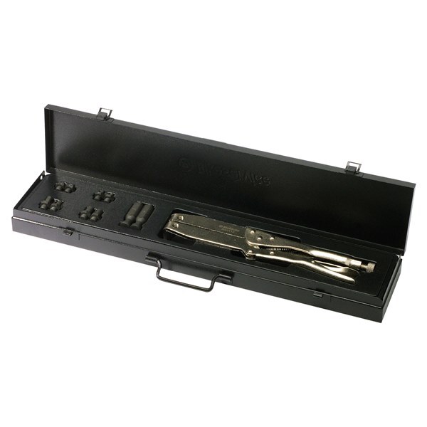 - Vice grip style locking wrench holds clutch hubs, flywheels, gears, pulley and sprockets during lock nut removal and installation