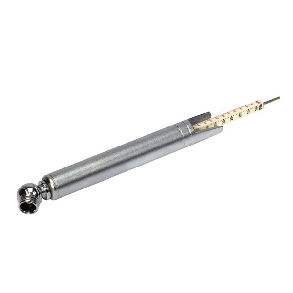 - Pencil style gauge checks tyre pressure and tyre tread depth