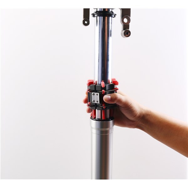 - Unique design with spring loaded fingers that lock securely around the fork plunger.