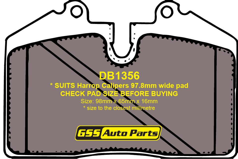 * SUITS Harrop Calipers 97.8mm wide pad - CHECK PAD SIZE BEFORE BUYINGItem Specifications