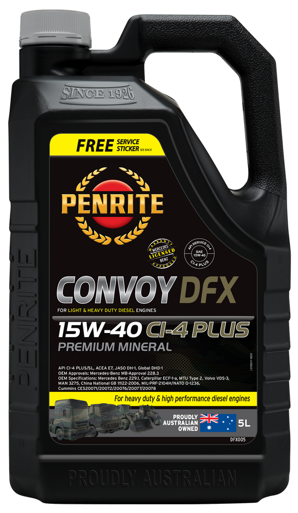 The Penrite Convoy DFX 15W-40 Premium Mineral Diesel Engine Oil is designed to deliver exceptional performance and protection for your diesel engine. Ensure compatibility with your vehicle by checking the manufacturer's specifications. Place your order today or contact us for more information on how this product can benefit your vehicle's performance.