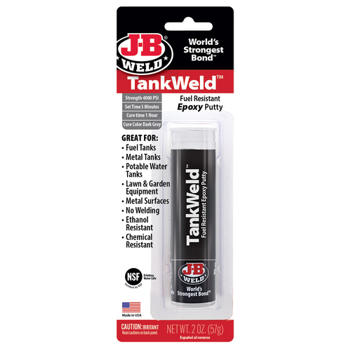 The JB Weld JBW8217 TankWeld is a fuel-resistant, hand-mixable epoxy putty designed to seal and repair metal tanks effectively. This versatile product offers a quick and reliable solution for fixing leaks and cracks, ensuring your tanks remain secure and operational.