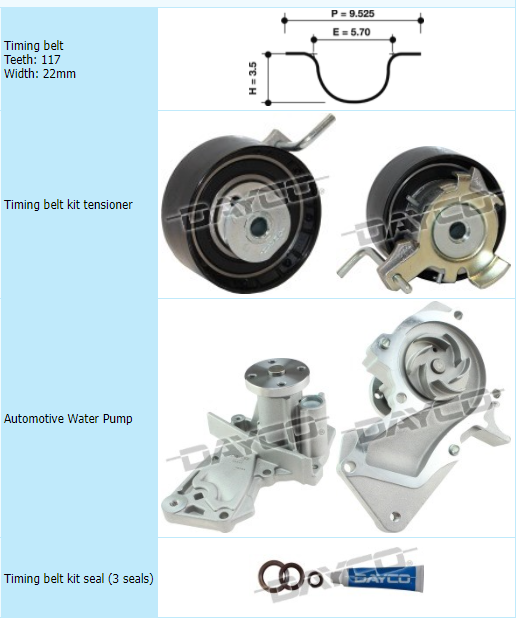 All DAYCO Water Pump Kits use only OEM quality Water Pumps and come complete with all essential components in one box, so don't let a failed Water Pump compromise your timing belt system replacement or your reputation, ask for a DAYCO Timing Belt Kit complete with Water Pump and know you're covered!
