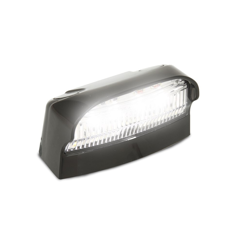 The LED licence plate lamp with black housing is designed for durability and efficiency. Measuring 70mm x 42mm x 42mm, this lamp operates on both 12 and 24 volts and is ECE approved.