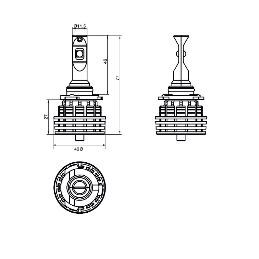 LED HB3 headlight kit, single beam, 77mm high, 40mm round, 9-32 volt, 5000lm total effective lumens. Non ADR approved (off road use only). HB3 retrofit with a 200mm cable including driver and HB3 plug. Sold as a pair in retail packaging (blister pack).