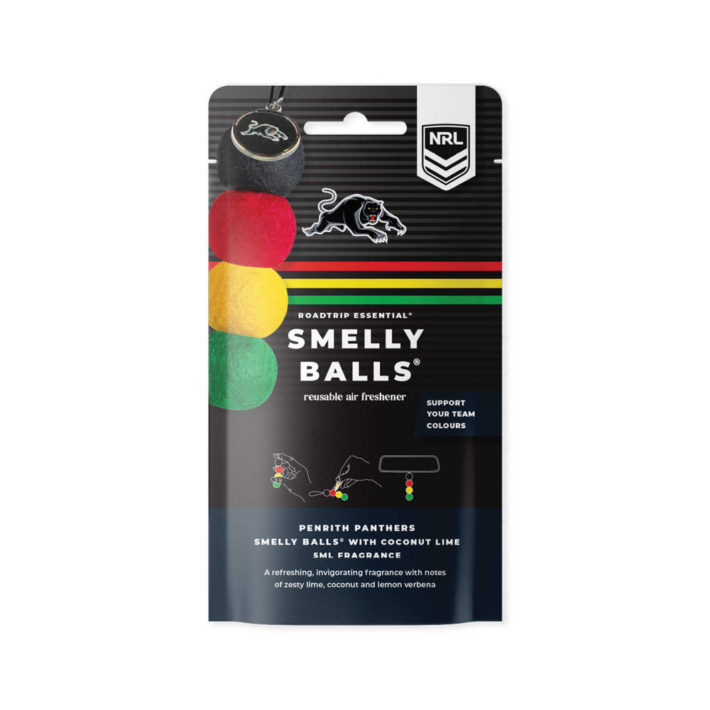 Support your team colours with the ultimate road trip essential: a Smelly Balls reusable car air freshener! Each kit includes four unscented felt balls, proudly displaying your team's charm and equipped with an elastic string for effortless car hanging. Completing the package is a 5mL bottle of Smelly Balls' Coconut + Lime fragrance oil, a refreshing blend of zesty lime, creamy coconut, and energising verbena. Let this captivating fragrance transport you to the vibrant atmosphere of NRL matches, infusing your surroundings with a scent as powerful as your support for your favourite team.