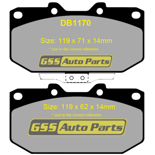 | Pad Size | 2 Pads: 119mm x 71mm x 14mm + 2 Pads: 119mm x 62mm x 14mm |