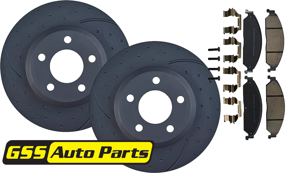 RDA Dimpled & Slotted Brake Disc Rotors (Pair) & GP Max General Purpose Brake Pads