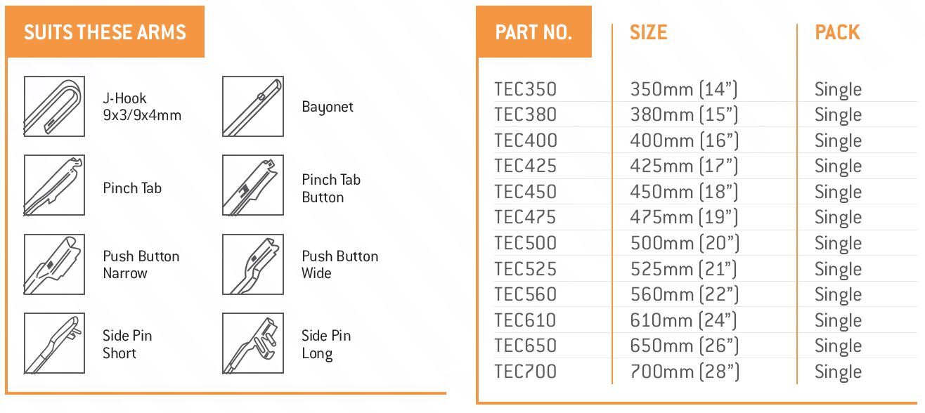 All TRICO Tech® blades feature a UV stabilised, 100% natural rubber element which provides quiet operation and superior wipe quality. TRICO Tech® outshines all other blades in its category.
