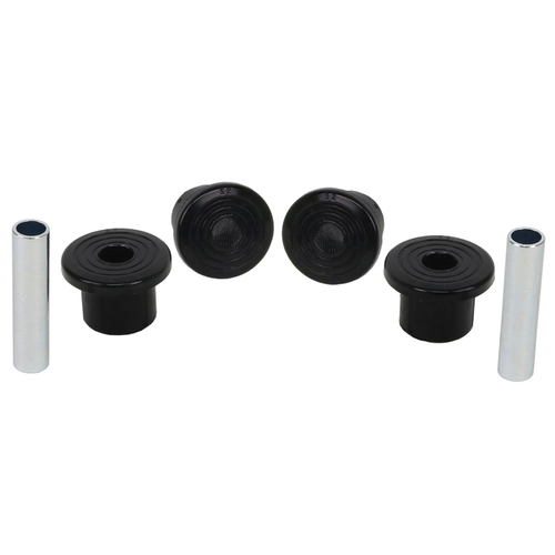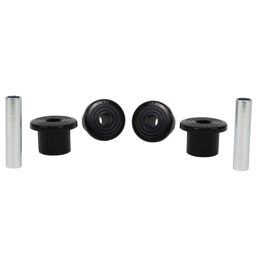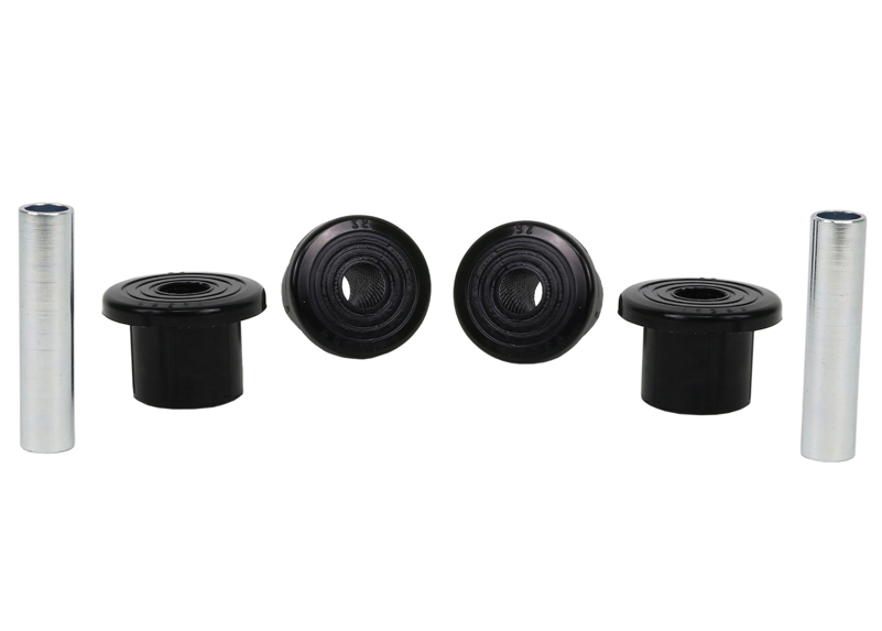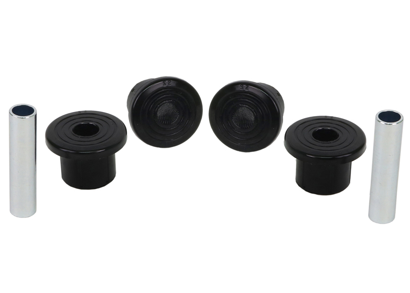 A critical service item for any leaf sprung vehicle. High kilometres and heavy load carrying causes excessive wear on rubber bushings. Whiteline's signature black bushings are made tough and offer outstanding abrasion resistance, high load bearing capability (4WD's, utes and towing), flexibility, increased tensile strength and chemical resistance to oil, grease, ozone and weathering.