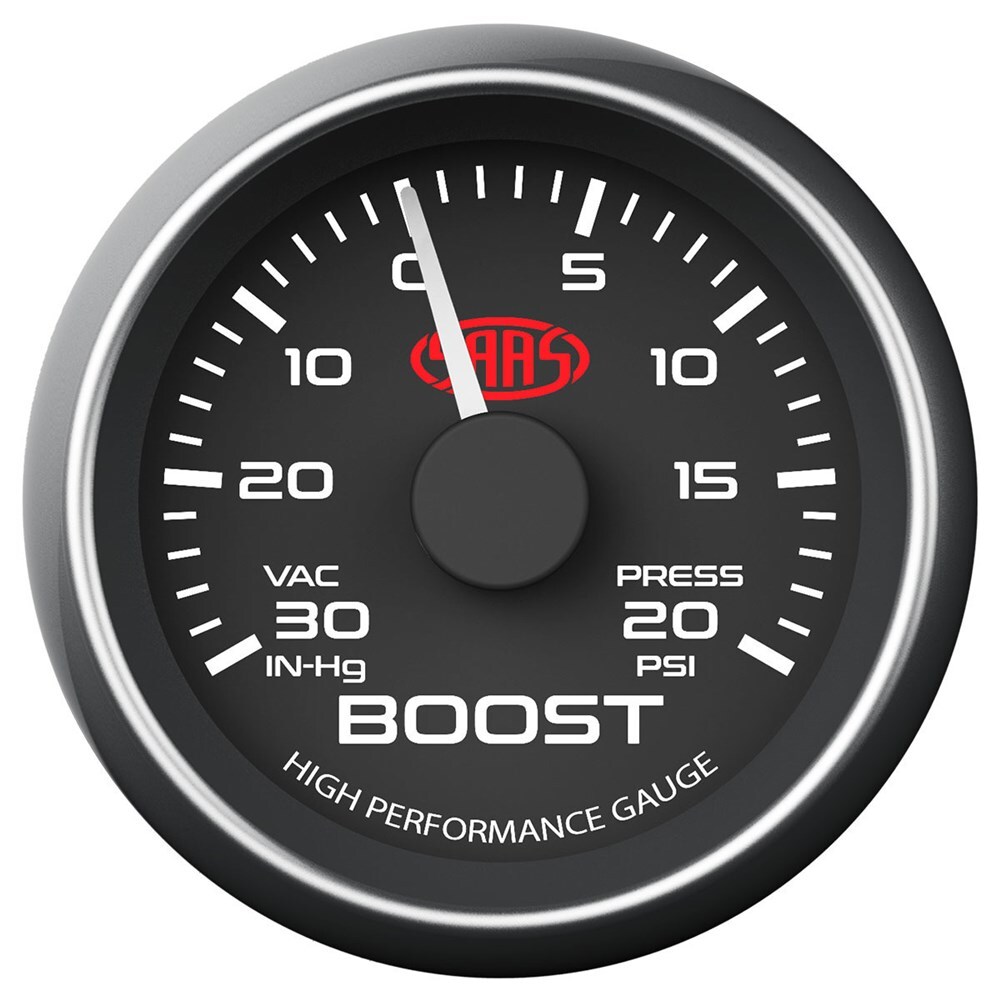 SAAS 52mm Black Muscle Series Boost Gauge (30inHg-20PSI) - SG-TB52B